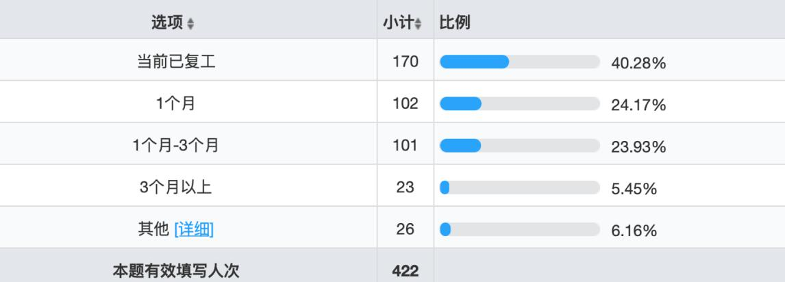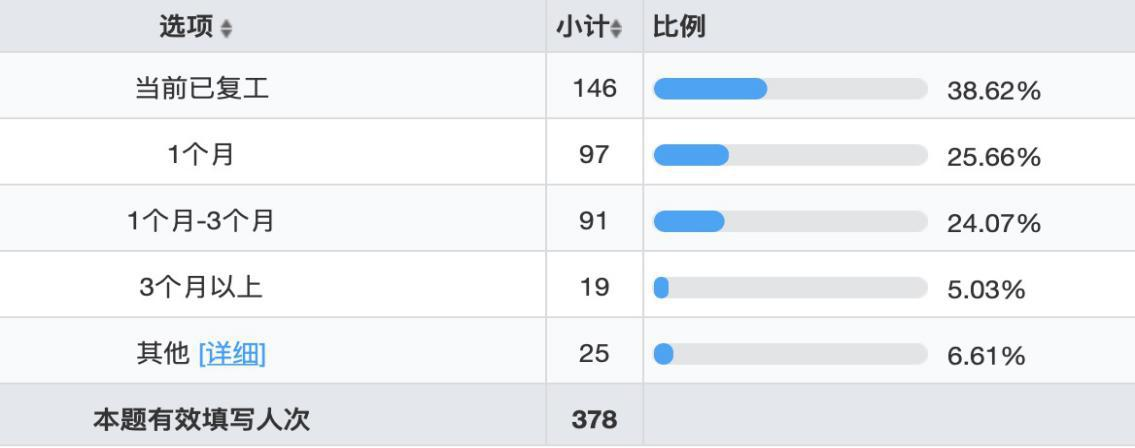 “根本無法開工”這一項(xiàng)也由 21.6%降到 19.05%,最后為17.54%,整體開工情況有好轉(zhuǎn)的跡象。