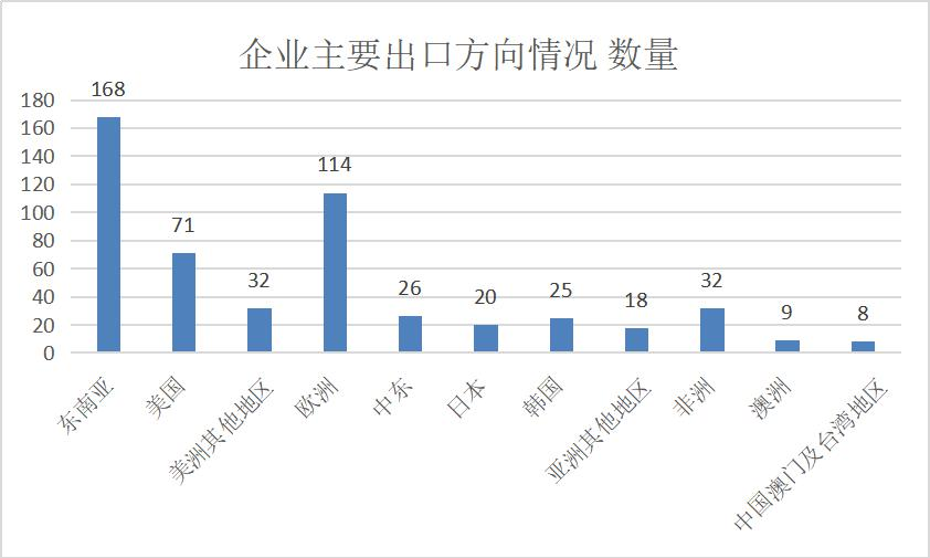 422 份問卷中,約 110 家企業(yè)無出口,占比為 26.07%,主要銷往國內(nèi)市場;其余 312 家參與答卷的企業(yè)有出口業(yè)務(wù),其中有 34 家企業(yè)或因產(chǎn)品不可替代、或因海外有工廠,迅速調(diào)整了布局、或因工廠靠近港口出貨便利等原因,出口沒有受到影響,其余企業(yè)均有著不