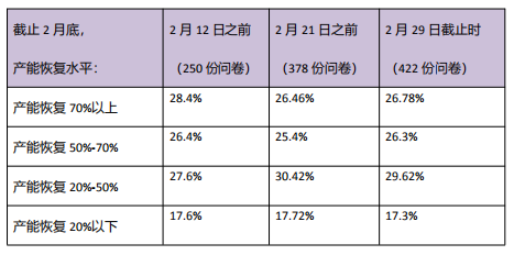 表 2. 2 月底前企業(yè)恢復(fù)產(chǎn)能情況(分截點(diǎn))