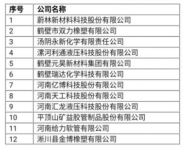 蔚林股份、鶴壁雙力、湯陰永新、匯龍液壓等12家橡膠行業(yè)企業(yè)進(jìn)入該名單。