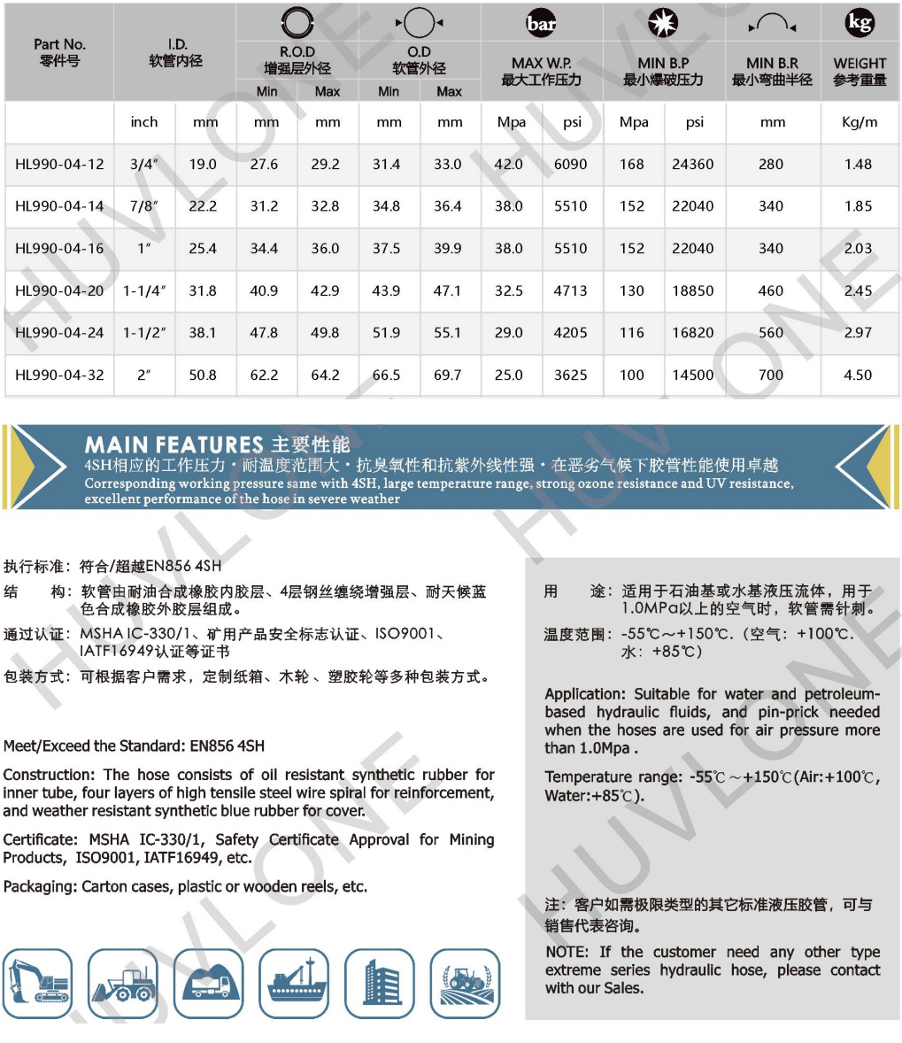Meet/Exceed DINEN856 4SH Four steel wires spiral rubber hydraulic hose with high & Low temperature - resistance