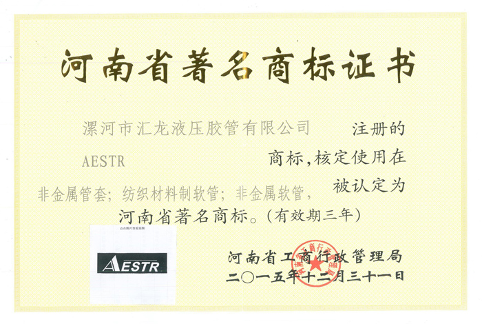河南省著名商標(biāo)證書(shū)
